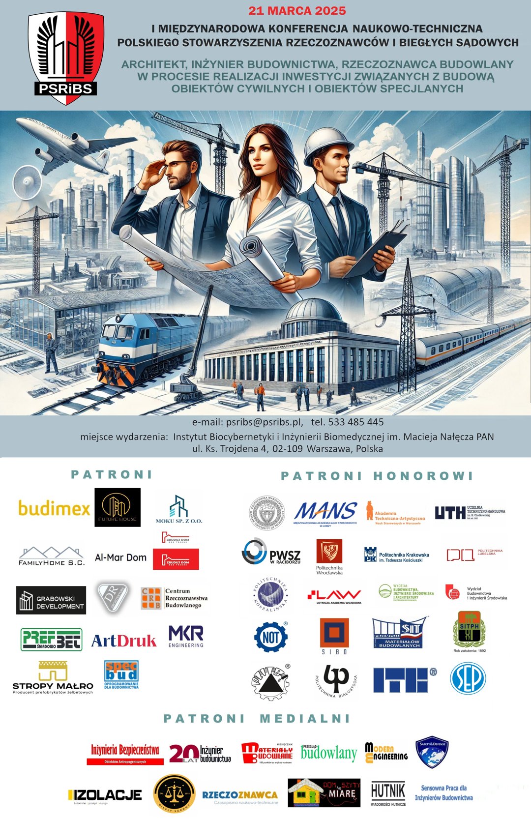 Polskie Stowarzyszenie Rzeczoznawców i Biegłych Sądowych jest organizatorem I Międzynarodowej Konferencji Naukowo-Technicznej „Architekt, inżynier budownictwa, rzeczoznawca budowlany w procesie realizacji inwestycji związanych z budową obiektów cywilnych oraz obiektów specjalnych”, która odbywa się 21 marca 2025 r. w Instytucie Biocybernetyki i Inżynierii Biomedycznej im. Macieja Nałęcza PAN ul. Ks. Trojdena 4 w Warszawie.