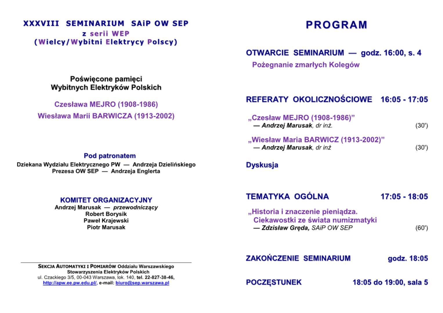 ZAPROSZENIE NA XXXVIII SEMINARIUM WEP