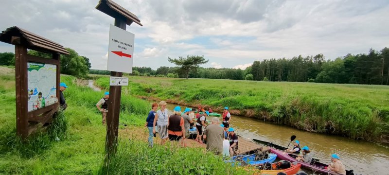 Odcinek tej linii jest bardzo urokliwy i prowadzi przez piękny las i stawy hodowlane karpia milickiego. Po krótkim spacerze ze stacji i dotarciu na przystań rozpoczęliśmy wodowanie kajaków na rzekę Barycz. Rzeka ta przecina Park Krajobrazowy Doliny Baryczy. Region ten słynie z bogatej prawie 800 letniej tradycji hodowli karpia.