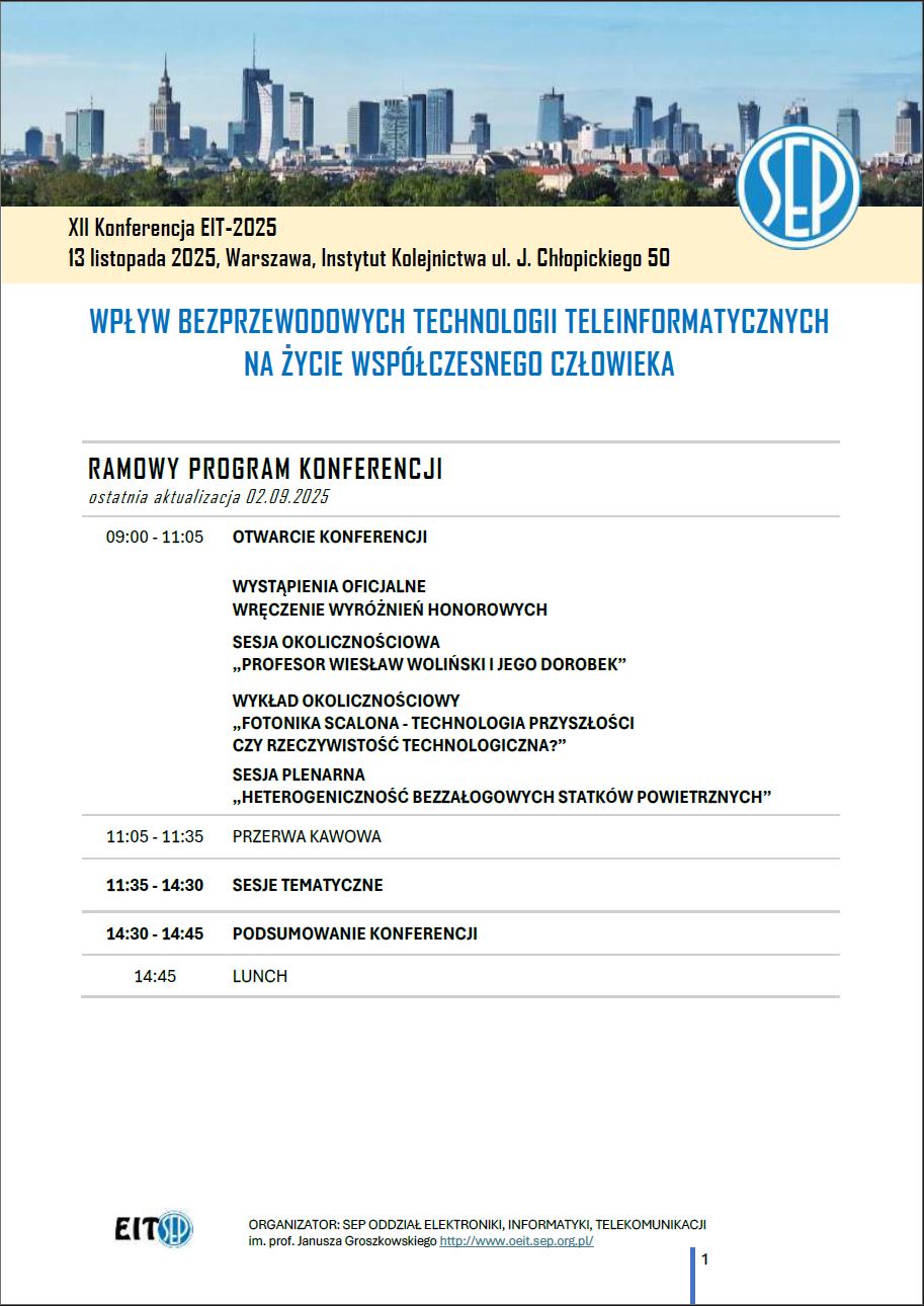 KONFERENCJA EIT-2025 „WPŁYW BEZPRZEWODOWYCH TECHNOLOGII TELEINFORMATYCZNYCH NA ŻYCIE WSPÓŁCZESNEGO CZŁOWIEKA”