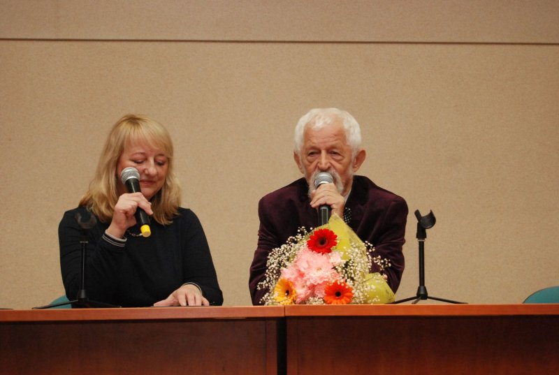 Po kolejnej dawce muzyki gitarowej, mikrofon przejęła redaktor Polskiego Radia Białystok Dorota Sokołowska przeprowadzając zaplanowany przez organizatorów publiczny wywiad z Profesorem, co nie było dla Niej łatwe, gdyż wiele rzeczy Jubilat już wcześniej powiedział w swojej przemowie. Pani redaktor spisała się doskonale, a odpowiedzi na Jej pytania przybliżyły jeszcze bardziej postać i zainteresowania Profesora. Po kolejnej dawce muzyki, na koniec wydarzenia nastąpiły wystąpienia zaproszonych gości i wychowanków Profesora, a później pamiątkowe fotki.