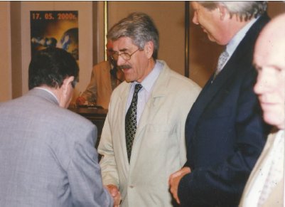 Marek Hohensee z COSiW odbiera gratulacje od prezesa SEP Stanisława Bolkowskiego za organizację ŚDT w 2000 roku