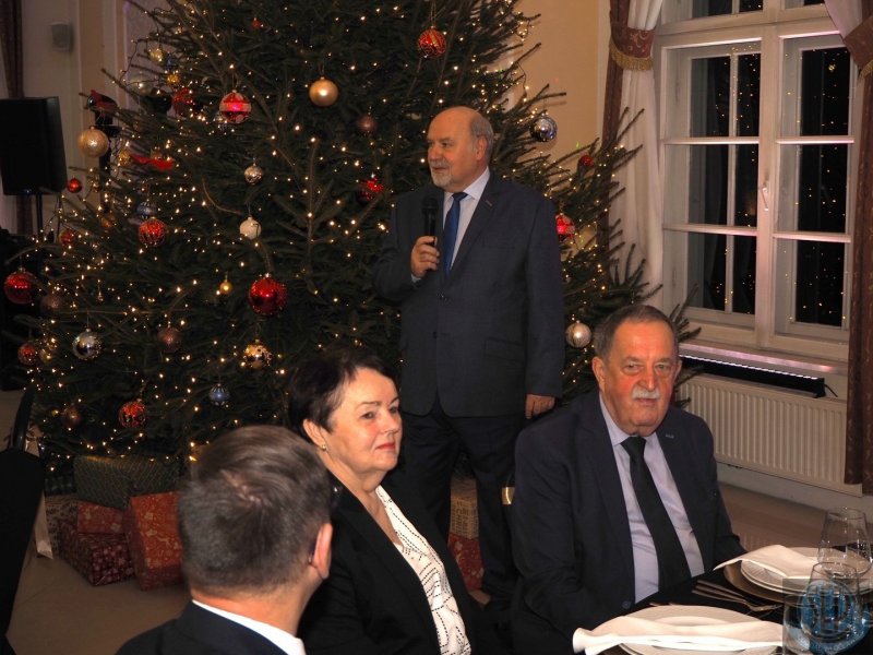 Bankiet uroczyście rozpoczął prezes Oddziału, kol. Jacek Małecki. Przywitał uczestników oraz zaproszonych gości, wśród których znaleźli się: kol. Bogumił Włodarczyk, jeden z założycieli i pierwszy prezes Włocławskiego Oddziału SEP, kol. Andrzej Szczechowicz, kierownik Działu Dokumentacji Energetycznej w Radziejowie, kol. Marcin Andrzejuk, dyrektor ds. Rozwoju x Centrum Zaopatrzenia Energetyki PAS. Nadmienił, że Zarząd Główny SEP zaakceptował wnioski ZO o uhonorowanie naszych członków, a w tym: tytułem Zasłużonego Seniora SEP kol. Bogumiła Włodarczyka, Srebrną Odznaka SEP kol. Andrzeja Szczechowicza, również Srebrną Odznaką SEP kol. Jacka Kandybę (ceniony pedagog branży elektrycznej) oraz Złotą Odznakę SEP prezesowi Oddziału, kol. Jackowi Małeckiemu. Wręczenie odznaczeń przez przedstawiciela ZG odbędzie się w późniejszym terminie, podczas planowanego Walnego Zgromadzenia Oddziału. Prezes podsumował również krótko kończący się 2025 rok. Wspomniał także o kończącej się kadencji i zaprosił wszystkich członków Oddziału na zaplanowane na dzień 7 marca 2026 WZO.