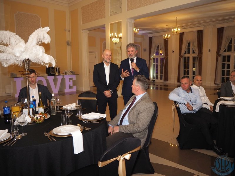 W dalszej oficjalnej części wiceprezes Oddziału, kol. Wojciech Mosakowski po krótce przedstawił sylwetki wyróżnionych osób oraz wspomniał ich zasługi dla Stowarzyszenia i Oddziału. Wspomniał również o naszym gospodarzu, Riveside Hotel we Włocławku przy ulicy Piwnej i sali bankietowej, której historia sięga przełomu XIX i XX wieku, a historyczny wygląd nawiązuje do lat dwudziestych ubiegłego wieku. Była to pierwotnie sala Włocławskiego Towarzystwa Wioślarskiego i mimo zmian ustrojowych oraz własnościowych zachowała swój dostojny wygląd. Hotelowa restauracja zadbała również o podniebienia wszystkich gości. Dania zimne i gorące, napoje wszelakie oraz słodkości były wyśmienitej jakości. Oprawę muzyczną zapewnił DJ NIGHT SHIFT.