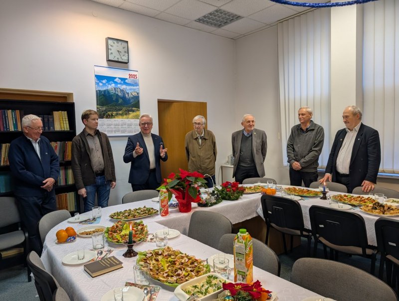 …jeszcze dni kilkoro i zakończy się spieszne utrudzenie. Co roku grudzień pełen pilnych zobowiązań zawodowych, a i chcielibyśmy znaleźć czas, by podzielić się świątecznym blaskiem Bożego Narodzenia. Bardzo miłe, pełne serdeczności są organizowane, jak nasz kraj długi i szeroki, spotkania zabieganych na co dzień koleżanek i kolegów. Nazywane bywają „świątecznymi’, „noworocznymi”, najczęściej „wigilijnymi”. Kilkadziesiąt lat liczy już tradycja przygotowania takiego zlotu pracowników - niegdyś Zakładu Maszyn Elektrycznych, teraz Zespołu ME Wydziału Elektrycznego Politechniki Warszawskiej.